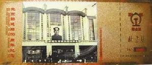 图为信宝忠收藏的北京站金箔站台票。12日,信宝忠在家里告诉记者,从2014年3月27日开始,中国铁路各客运站陆续停止售铁路站台票,至此,延续了100多年的铁路站台票已经退出历史舞台,渐渐淡出人们的视野。信宝忠介绍,在中国,铁路客运所使用的站台票始终保持了原始的“小硬板”风格。