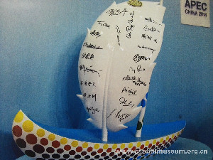 2015年5月21日下午,北京国家游泳中心有限责任公司负责人正式将有21位参会领导人亲笔签字的APEC未来之舟原件移交首都博物馆永久收藏。