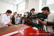 2008年,中心针对古书画揭裱过程中的关键问题展开研究,并于2012年承担古书画保护课题,在北京市文物局全面指导和北京科委的大力支持下,课题组针对古书画文物保护过程中的揭展易损伤文物本体、揭展困难的难题进行了广泛而深入研究。6年多来,通过实验,积累了数万个数据,经过上千次的反复应用,最终成功研制出应用于古书画保护的生物揭展剂,使这个困惑人们的千年难题得以解决。