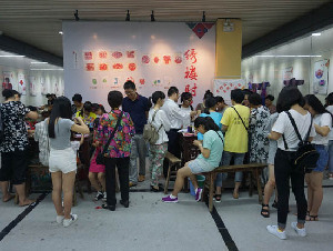 在展览现场,不仅有年纪大的老艺人,年轻的女孩子展示手工活也不在话下,编制手链、剪纸、制作纸花等。活动还设置了知识抢答和观众手工体验、作品展示等环节,参观者在剪纸、编手绳等女红制作的乐趣中流连忘返。