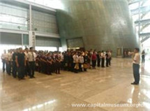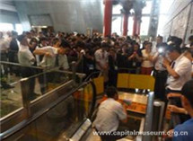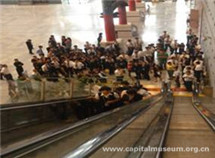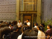 2015年7月31日17时30分至18时30分首都博物馆针对当前社会频发的电梯伤人安全事故,为吸取教训,保障参观观众的人身安全,提高员工的应急处置能力,由安保部、开放管理部、物业部联合组织首都博物馆开放平台一线员工120余人,进行了电梯使用安全常识培训和应急处置演练。通过培训和演练,提高了开放平台一线员工的责任意识,掌握了发生电梯台阶卡住鞋带无法拔出情况的处置,以及人员在电梯上忽然摔倒等情况应急处置的方法,为保证开放期间参观观众的安全奠定了良好的基础。