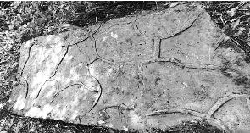 记者从照片看到,“石刻”表面纹路清晰可见、弯弯曲曲、粗细不一,经过雨水的侵蚀,已经看不出有过明显的雕凿痕迹(见图)。经过工作人员现场测量,“石刻”长280厘米,宽150厘米,厚15厘米,估计重量为1000多公斤。
