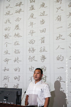 会上,团委书记宋丹总结了“代言”活动的开展情况,由馆领导为获奖者颁发了荣誉证书,十佳代言人逐一登台,通过PPT、微视频、海报或者雕刻等多种形式,结合自身岗位工作,深情阐述自己对社会主义核心价值观的理解和对馆训、愿景的阐释,代言内容朴实、真诚,感染了在场的每一个青年。文物搬运工王凤亮的代言作品是一幅木雕“福”字,他说:爱岗是本,敬业是福,他在首博工作很幸福。