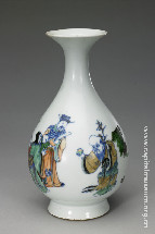 珐琅彩是瓷器装饰彩之一。珐琅彩瓷是清宫廷御用器,康熙晚期创烧。康熙珐琅彩瓷多在红、黄、蓝、胭脂等色地上进行花卉装饰,制作极为考究,因此成本高而产量低,传世品很少。