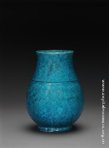 洒蓝釉创烧于明代宣德年间,正德、嘉靖时也有少量烧造,但明代洒蓝釉瓷器的产量很低。康熙时期这一品种得以发展,产量和质量大大提高。康熙洒蓝釉瓷器多加以描金装饰,给人以富丽堂皇之感。
