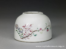 粉彩是康熙末期出现的一种瓷器低温釉上彩。粉彩瓷器由于掺入粉质,在彩绘上改变了五彩那种单线平涂的生硬色调。瓷面光泽透亮,粉润柔和,与被称为“硬彩”的五彩对比,又有“软彩”之称。康熙御窑粉彩瓷器烧制数量较少,因而传世品极少。