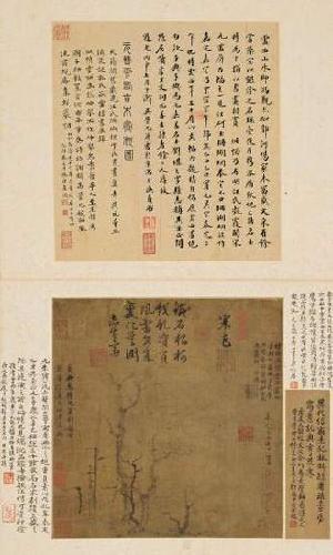 曹知白(传) 古木寒柯图 泰定乙丑(1325年)作镜心 水墨绢本 画28×26cm;书27×25.5cm