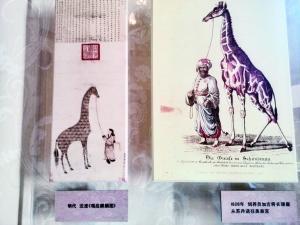 最有意思的展览是明代沈度的《瑞应麒麟图》。从图片可以看到,一个明朝人牵着一头高高的长颈鹿。据工作人员介绍,在明代,中国的“动物园”已经从非洲购进了长颈鹿,比欧洲要早近300年。只是当时人们不认识长颈鹿,认为这种动物就是传说中的麒麟。