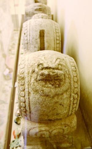 展览还展出一座高约1米的兽纹石醢。这座石醢底座为明代石雕,石醢为清代,也有专家断言其与北海的独山大玉醢为同一时期的作品。石醢上雕刻着龙、羊、花草、云纹等,从规制看为皇家物品。说起石醢的发现,也是个偶然,上世纪80年代末,北京动物园在清理修缮水禽湖时,从湖底意外挖掘出来,并保存至今。