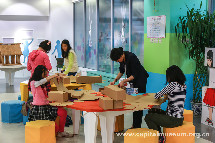 就在上个星期六,孩子们又一次走进了博物馆,这也是他们人生中首次参与博物馆展览的布展。孩子们用硬纸板折出城砖的模型,用彩笔画出城砖题记,写出自己的思考问题,在博物馆里搭建了一段自己的北京城墙。