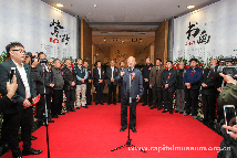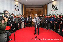 陈洪平先生代表宜兴紫砂清可园创作团队成员向出席开幕式的各位嘉宾和合作者霍春阳大师等四位书画艺术家表示衷心的感谢。同时也表示,特以这次展览为起点,今后将进一步向书画艺术家们学习,多多合作,创作出更多、更好的作品,回报社会各界的支持和关心。