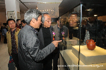 2015年10月27日下午3时,江苏省陶瓷艺术名人、研究员级高级工艺师陈洪平先生和霍春阳先生、王之海、杨沛璋、周午生四位津门画派代表性人物、著名书画艺术家在紫砂壶上合作作品200余件,在北京首都博物馆联袂展出并隆重开幕,开幕式由主办单位首都博物馆副馆长齐密云致开幕词,中国陶瓷行业协会副理事长、宜兴陶瓷行业协会会长史俊棠先生致辞祝贺,史俊棠先生在讲话中高度评价了这次展览的积极文化意义。他说:宜兴紫砂是中国陶瓷艺术中一个特殊的工艺门类,是中华陶文化的一枝奇葩,宜兴紫砂根植于宜兴6500年厚重的制陶历史上,在宋代开始,当地陶人发现并利用宜兴独产的紫砂土,以聪敏才智、勤劳双手创作出千姿百态的茶具,并有历代文人墨客参与创作,使宜兴紫砂茶具成为集中华陶文化、茶文化和书法、绘画、金石等诸艺术于一体,既具有优良的日用功能,又具有优美的欣赏、把玩价值的中华艺术陶,在世界上享有崇高的声誉。