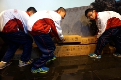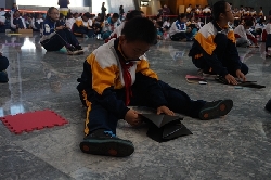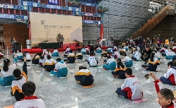 展览开幕式的主角是孩子们,他们坐了一地,专心致志地折头盔和纸砖,这些折好的作品后来都送至展厅展出。开幕式由北京市文物局博物馆处处长哈骏主持,北京市教委处长王蕤、北京市文物局副巡视员、首都博物馆党委书记白杰、北京市文物局于平副局长先后讲话。开幕式也首次尝试了网络媒体直播的新的宣传推广形式。