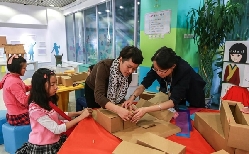 展览开幕式,主角是孩子们,这仿佛成了他们的一节手工活动课。