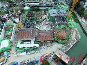 航拍下的粤剧博物馆位于恩宁路老城区之中,已经初现风姿。