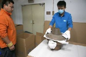 武旺华带领的团队,从今年7月份开始为省博物院的文物打包,到现在已经忙了近4个月,每天从9时忙到16时。省博物院有藏品10余万件,至今已将瓷器和青铜器打包完毕。目前,文物打包工作已完成大半,预计本月底10余万件藏品将全部打包装箱。