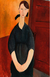 《波莱特·茹尔丹》(Paulette Jourdain) 描绘的是莫迪里阿尼艺术商的女佣兼情人Leopold Zborowski。