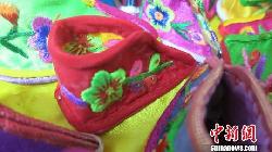 图为郭彩云制作的缩小版绣花鞋。