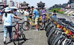 今年1—8月份,城墙景区接待227.14万人次。在城墙上骑车观赏古城美景,对许多游客来说是来西安不可错过的一件事。城墙上有多个自行车租赁点,每个点有自行车100多辆,工作人员说,这些自行车平时大概能租出去一半,而节假日则全部租完。除了自行车,城墙上还有观光电动车,据工作人员介绍,每个城门处可以买票乘坐,间隔时间十来分钟一趟。除了游客的日常参观,城墙也成了各种大型活动的举办地。每年春节期间的灯会逐渐成为传统,长达数百米的大型花灯,用大型三脚架以及铁质辅材固定在城墙上。而西安城墙国际马拉松赛、西安城墙大学生马拉松赛、西安城墙千人马拉松赛以及各个单位组织的城墙越野赛等,各种或大或小的赛事、商业性活动时不时在城墙上举行。
