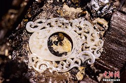 11月18日,考古人员在南昌西汉海昏侯墓主椁室东侧发现多件玉佩饰,其中一件玉佩饰做工极其罕见。这件7*10cm的玉佩饰不仅做工精美,上面雕刻有龙、凤等图案,栩栩如生。专家推断这件玉佩饰疑似韘形佩,这种高等级玉佩饰的发现更加反映了墓主人的身份特殊及高贵。