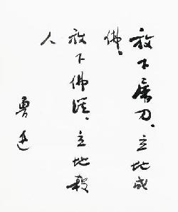 鲁迅手书佛偈的前两句“放下屠刀,立地成佛”,为人所习见。但鲁迅笔锋翻转写下“放下佛经,立地杀人”,却很具批判性和讽刺性,带有鲁迅一贯的思想深刻、言辞犀利的特点。据介绍,这幅作品大约创作于1931年前后,其灵感来自于有一次鲁迅与友人内山完造的谈话。当时,内山完造感慨地说:“我在上海居住了二十年之久,眼看中国的军阀政客们的行动,和日本的军阀政客们的行动,真是处处相同;那就是等待时机,一朝身在要职,大权在握,便对反对他们的人们,尽其杀害之能事,可是到了局势对他们不利的时候,又像一阵风似地销声匿迹,宣告下野,而溜之大吉了。”鲁迅深有同感,或许也是这幅手书想要传达的精神。