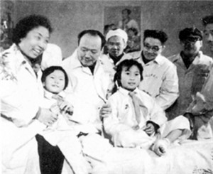 1964年3月,乌兰夫(左三)到内蒙古人民医院看望龙梅、玉荣。