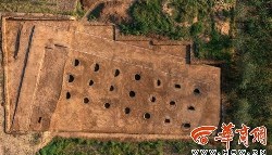 在去年考古专家对4号陵园的勘探中,“中”字形陪葬墓旁,考古专家发现一处残存平面呈“凹”字形的建筑遗址,东西长55米、南北宽40.5米,夯筑墙体宽4.8米,总面积达2230平方米。孙伟刚说,这一建筑结构当为“中”字形墓葬的礼制建筑,用来祭祀“中”字形墓的墓主人。