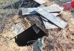 盗墓洞口用木板遮盖