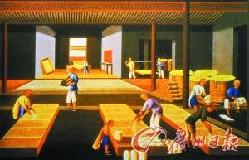 清代广州外销通草画体现的广州瓷器远洋运输前的包装场景。