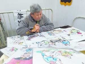 笔下的画越来越多,老人就想着能让更多人看到这些画。“描述天桥民俗的书有很多,但一直缺乏图画。现在经历过老天桥景象的人越来越少了,把这些形象留下来也就显得很重要。”闲暇时,他就把这些装在一个提兜里,去博物馆、图书馆转悠,打听是否能展出。一次在首都图书馆,老人听了天桥民俗文化协会常务副会长赵兴力的公益讲座《逝去的天桥 鲜活的文化》,“听完讲座我就知道他肯定感兴趣”。个把月前,王博生终于挑了几十幅画作一一塑封,装进一辆平时买菜用的小车,拖着小车就跑到天桥来找人。老人沿着天桥斜街边走边打听,恰巧碰见赵兴力出门。伴随着这颇具戏剧性的一幕,天桥民俗风情画终于回到了“家”。