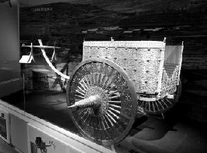 此次展出的这辆豪车,车身各部位装点着金银珠宝饰品,极尽奢华。据王辉介绍,这样大规模的使用金银箔片装饰礼仪车,在中原各国是从来没有的。而镶嵌在车体上的宝石,最初的来源也非中国。单凭这两点就可以断定,在那个遥远的年代,戎人在学习中原文明的同时,也从别的文明汲取了养分。