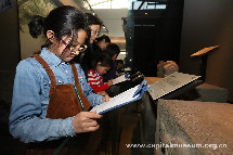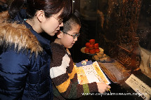 首都博物馆民俗展厅的设计主线是“胡同人家”,展厅里隐藏了很多老北京四合院的文化线索,文物展示介绍了老北京的风俗文化。借助这些展示内容,我们设计了此次冬令营让亲子家庭了解老北京四合院及相关过年的礼俗生活。