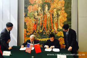 3月21日上午,美国弗吉尼亚艺术博物馆馆长亚历克斯•纳哲斯(Alex Nyerges)及副馆长迈克尔•泰勒(Michael Taylor)到馆参访。党委书记白杰、馆长韩战明、副馆长黄雪寅接待来宾并座谈。双方就未来加强两馆交流与合作,促进中美博物馆文化互鉴等事宜取得广泛共识,正式签署了两馆合作框架协议,并对今后合作办展深入交换了意见,有望未来几年促成相关展览项目。会前,来宾在馆领导的陪同下饶有兴趣的参观了《走进养心殿》、《馆藏京剧文物展》、《古代瓷器艺术精品展》和《古代佛像艺术精品展》。