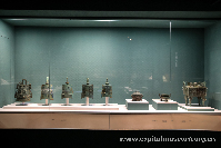 在序厅展出12件文物概括从史前至明清的审美发展历程,以文物的艺术美呼应展览主题,数字也隐含着中华文化的世界观。展览第一部分“道法自然(史前时期)”:史前先民在与自然共处之中逐渐积淀了对美的认识与追求,美来自自然,美的萌芽是必然。本单元展出文物根据空间分为两组。第一组展示旧石器时代末期美的萌芽,第二组展示新石器时代美的初创。第二部分“天地之道(夏商周)”:中国传统文化扎根于商周礼乐文化。礼乐制度萌发于新石器时代末期,发轫于夏商,成熟于西周,消亡于东周,贯穿了夏商周时期。本章将空间分为四个展示组,分别展示夏商、西周、东周时期的广义礼器(包括铜器、玉器、原始瓷器、漆器)以及汉字之美。通过三个时段的对比,展现夏商周时期审美风尚的变迁,以及由此揭示的社会结构、哲学思想嬗替。第三部分“保合太和(汉唐)”:本单元时代范围为秦代至五代。大一统国家格局推动着思想诉求的发展,儒家仁爱与道家无为既对立又统一,浓缩了儒道哲学的 “天人合一”思想应运而生,道德与人欲、理性与浪漫踏上了和谐之路。第四部分“和合能谐(宋元明清)”:汉唐门阀士族的衰落与科举制度的成熟发展,使宋元明清时期的文人渐趋平民化。以宋明理学为代表的新儒学继承了东周以来的儒学思想,并融合了儒、释、道三教哲义,对包括文化艺术在内的社会各领域都产生了深远影响。文人艺术与市民艺术互相影响渗透,又各领风骚。繁荣的商业经济与工艺技术革新,成为艺术发展的助推力。