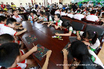 为更好地全方位筹备此次展览,我馆自《读城》新疆巡展培训班之后,专门组织“读城”项目团队,与新疆兵团军垦博物馆团队精诚合作,做到线上线下时时沟通。开展前夕,我馆派出“读城”项目团队与端午佳节走进新疆兵团军垦博物馆,为来自石河子第二小学、第五中学小学部110余名小学生带来了一场别开生面的互动体验教育活动。孩子们和工作人员一起通过讲座问答的形式了解北京的城池,绘制城门刮画,拼搭城砖。每一个环节都由我馆和新疆兵团军垦博物馆的社教人员亲自指导,孩子们的热情也是空前高涨,积极配合,顺利完成了每一个活动环节,充分为展览开幕预热。