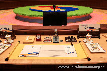 2017年6月27日,首都博物馆藏品部工作人员为征集“一带一路论坛”相关实物与资料,赴北京市怀柔区雁栖湖国际会议中心考察,与北控置业雁栖湖凯宾斯基酒店负责同志进行会谈,取得了丰硕成果。双方确定了首批捐赠物品,包括论坛主会场——集贤厅会议用品和宴会专用餐具等,并就论坛实景会标等下一批征集捐赠计划进行了磋商。