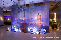 第三部分“水陆之要会 畿辅之襟喉”。辽会同元年(938),辽太宗耶律德光升幽州为南京,为辽五京之一;金贞元元年(1153),海陵王完颜亮迁都燕京,称中都;至元九年(1272),元世祖忽必烈定都北京,元大都成为全国的统治中心。“京师乃天下之都会”。北京城地位的渐进提升对通州的影响巨大。因为城市规模扩大,人口不断增加,对粮食物资的需求大大增加。通州成为汇集南方漕粮入京的“水陆要会”,迎来了历史发展的新机遇。