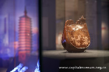 第四部分 “天庾正供 商贾辐凑”。明永乐迁都北京,通州再次承担其京师粮食命脉的作用。明代人评价通州称:“国家奠鼎燕京,而以漕挽仰给东南,长河蜿蜒,势如游龙,而通州实咽喉之地,我明之有通,如唐之有灞陵,宋之有卫源,其烦剧一也。”明清通州是京杭大运河沿岸的漕运重镇,水陆交通要会,对稳定封建国家的统治秩序产生了巨大作用,故而又有“一京、二卫、三通州”的说法流传。这一部分也分两小节,一小节展示明清通州运河情况,一小节展示明清的文物,通过这些文物明清时期通州的繁荣。