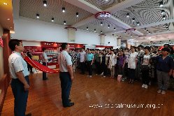 上午,在北京城市副中心规划展厅,全体人员举行了活动仪式,韩战明同志作了动员讲话并提了具体纪律要求;白杰同志代表馆党委作了关于此次活动的主旨发言;广大党员在靳非同志的带领下,面对党旗重温入党誓词,从誓词中寻找初心,牢记使命,广大团员及非党同志对这一时刻进行了鉴证。在首都博物馆东馆馆址,东馆建设办张宇同志对东馆的选址、周边的布局、目前建设进度情况做了详细的讲解,各支部在这片即将开土动工的土地上拍照进行了留念,这象征着我们的脚步即将迈向新的起点,也预示着首都博物馆的第三次创业已踏上征程。