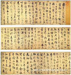 鲜于枢《进学解卷》原文是唐代韩愈的著名文章。此卷是鲜于枢用行书、草书所写,其全文,共108行,前半部以行书为主,后半部以草书为主,潇洒自然,一气呵成,刚柔顿挫,节奏分明。如水墨画高低远近,起伏多变。是鲜于枢作品中的一件精品。鲜于枢行草书风格兼具,将赵孟頫复古思想付诸实践,又受到来自北宋四家书法尺牍影响,并将之完美再现。鲜于枢行草书《进学解卷》,纵49.1厘米,横795.5厘米,首都博物馆藏。