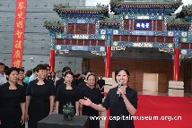 6月8日上午,伴随着欢快的音乐,首都博物馆的礼仪大厅里正在举行一场别开生面的“首博讲解队文化秀”。讲解队再添新成员,目前讲解队的规模是首博有史以来人数最多的。特别是平均年龄57岁的“芳华”队讲解员,以其出色的表现得到各方好评,已然成为首博独树一帜的服务模式。两批芳华队上岗,均选择在文化和自然遗产日,旨在强化博物馆传播者的服务意识,明确其岗位的社会价值与责任担当。讲解员们工作在首博最前沿,用真挚的情感和严谨的态度,努力塑造良好的首博形象。他们是首博链接社会的桥梁和纽带,是陪同观众解读展览,对话古人智慧的文化使者;是直接成就观众美好观展体验的践行者。首博讲解员将不辱使命,努力专研,博学多识,在讲解岗位上践行传播历史文化,传承中华文明。活动现场首博修复专家傅萌和栾桂芝老师为观众展示刺绣丝织品的技艺,展现传统文化的魅力与传承。