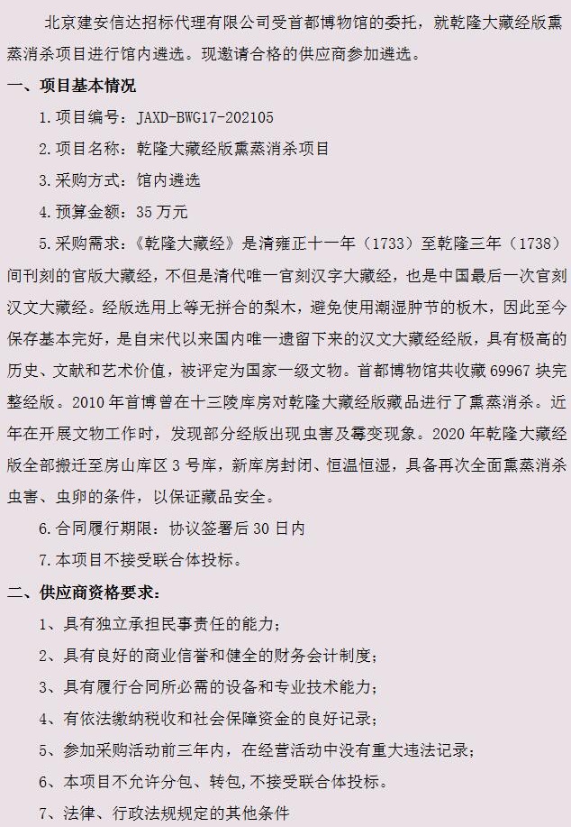 首都博物馆乾隆大藏经版熏蒸消杀项目