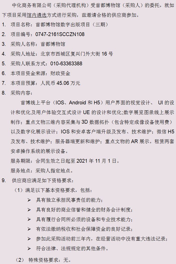 首都博物馆数字出版项目(三期)采购公告