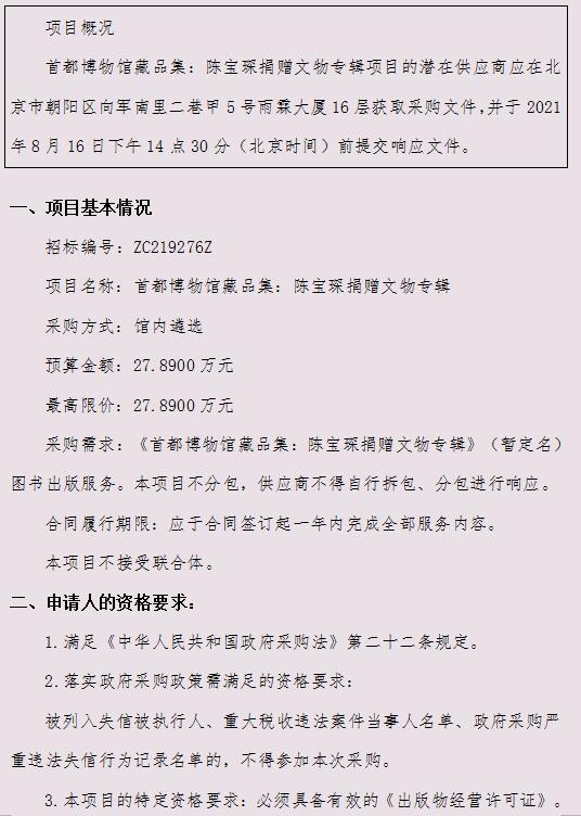 首都博物馆藏品集:陈宝琛捐赠文物专辑项目采购公告