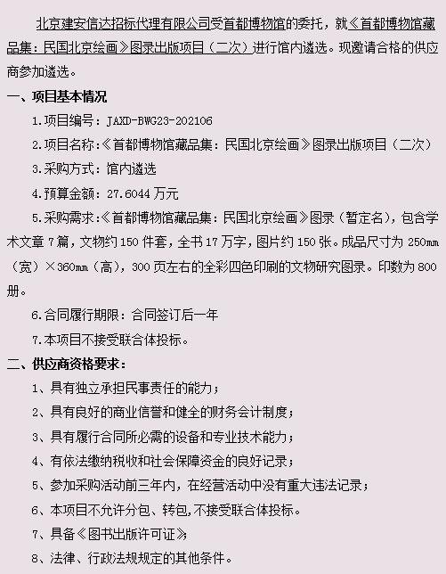《首都博物馆藏品集:民国北京绘画》图录出版项目(二次)