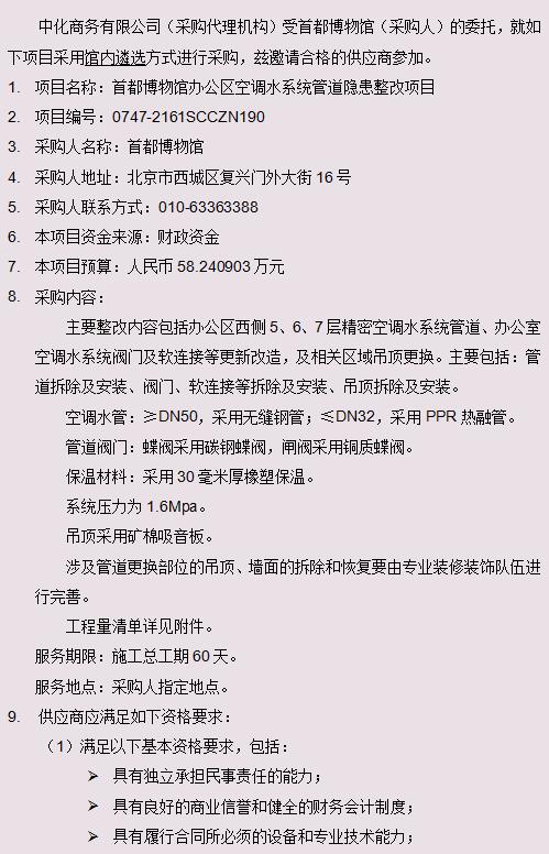 首都博物馆办公区空调水系统管道隐患整改项目采购公告