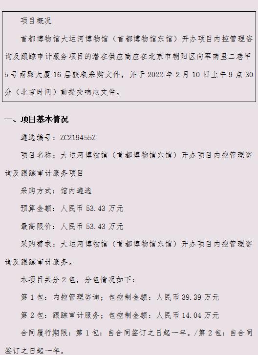 首都博物馆大运河博物馆(首都博物馆东馆)开办项目内控管理咨询及跟踪审计服务项目