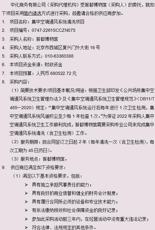 首都博物馆集中空调通风系统清洗项目采购公告