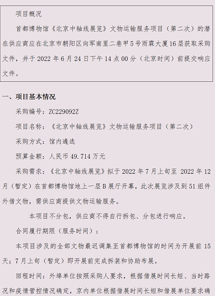 首都博物馆《北京中轴线展览》文物运输服务项目(第二次)采购公告