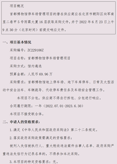 首都博物馆停车场管理项目采购公告